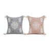 Hand embroidery done on linen faces, closed with a heavy brass zipper and finished with tassels, these pillows were inspired by the palaces found in glamorous city of Udaipur in the time of the Raj.